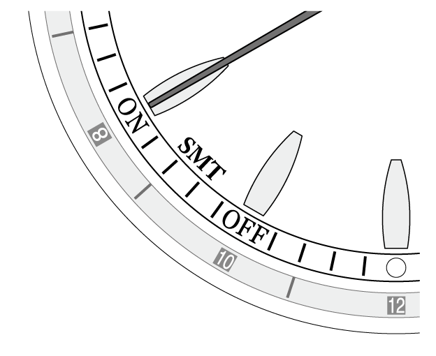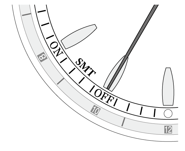 すでに「SMT OFF」になっていたときは、一度りゅうずを右に回して「SMT ON」にし、その後りゅうずを左に回して「SMT OFF」にします。