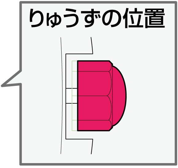 棒の先端が中央部のくぼみから外れないよう注意し、棒の後部を指で送り出すようにして確実にボタンを押し込みます。