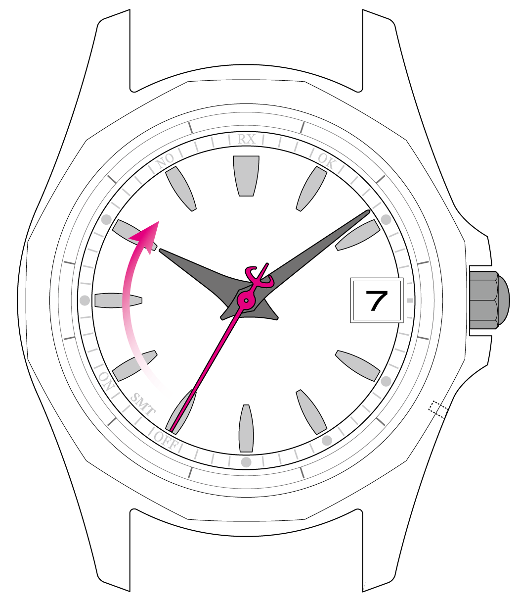 電波受信中は、時計を動かさないよう注意します。(所要時間:最大15分間)