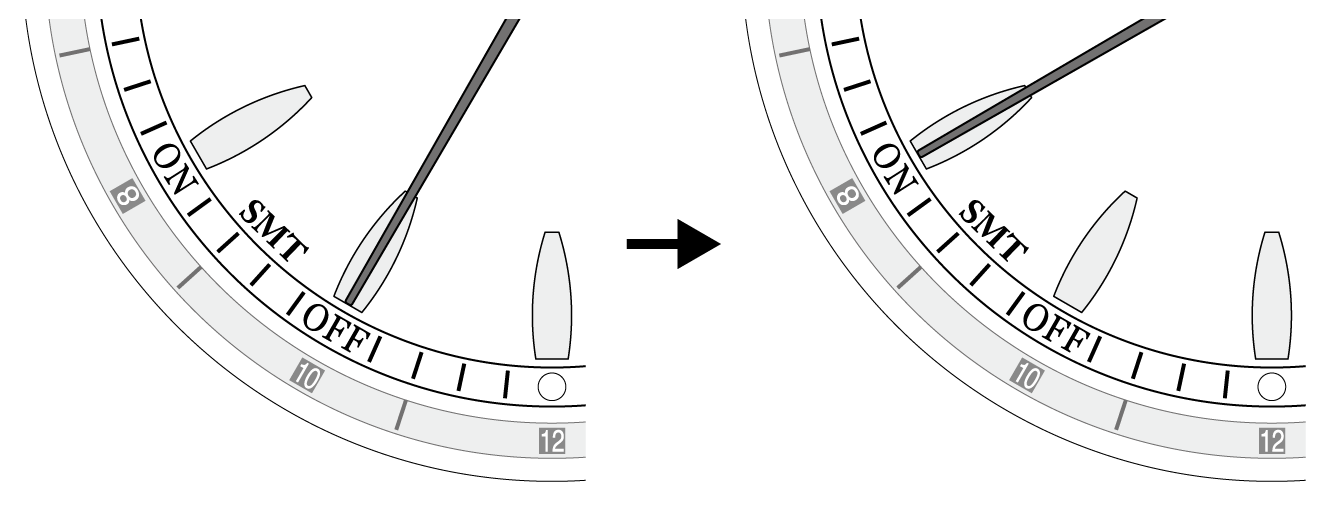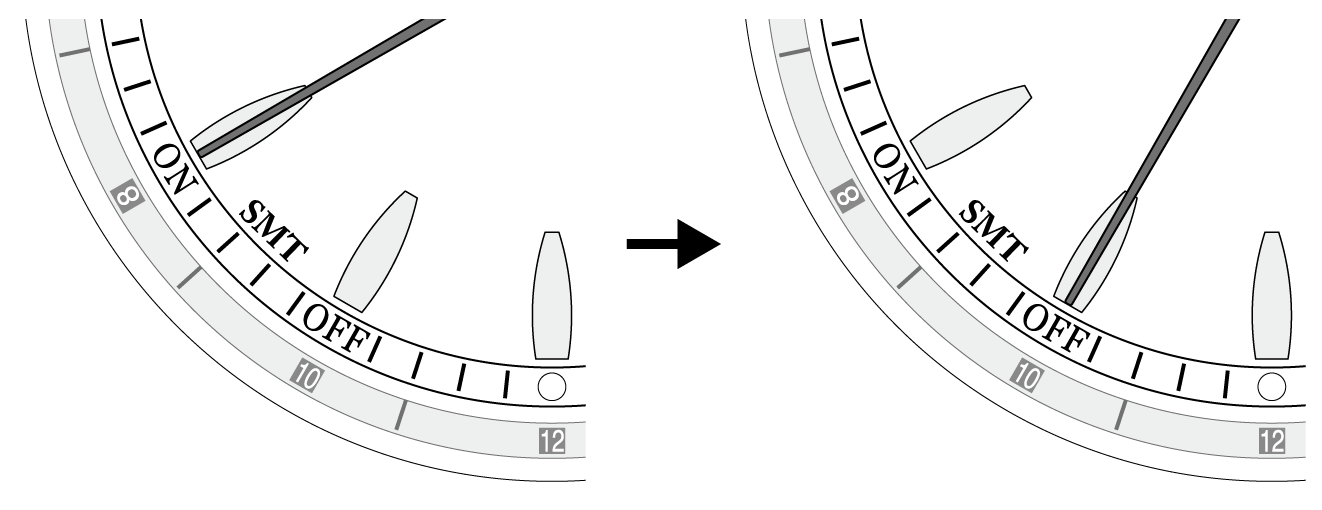 「SMT OFF」にするときは、りゅうずを左に回します。