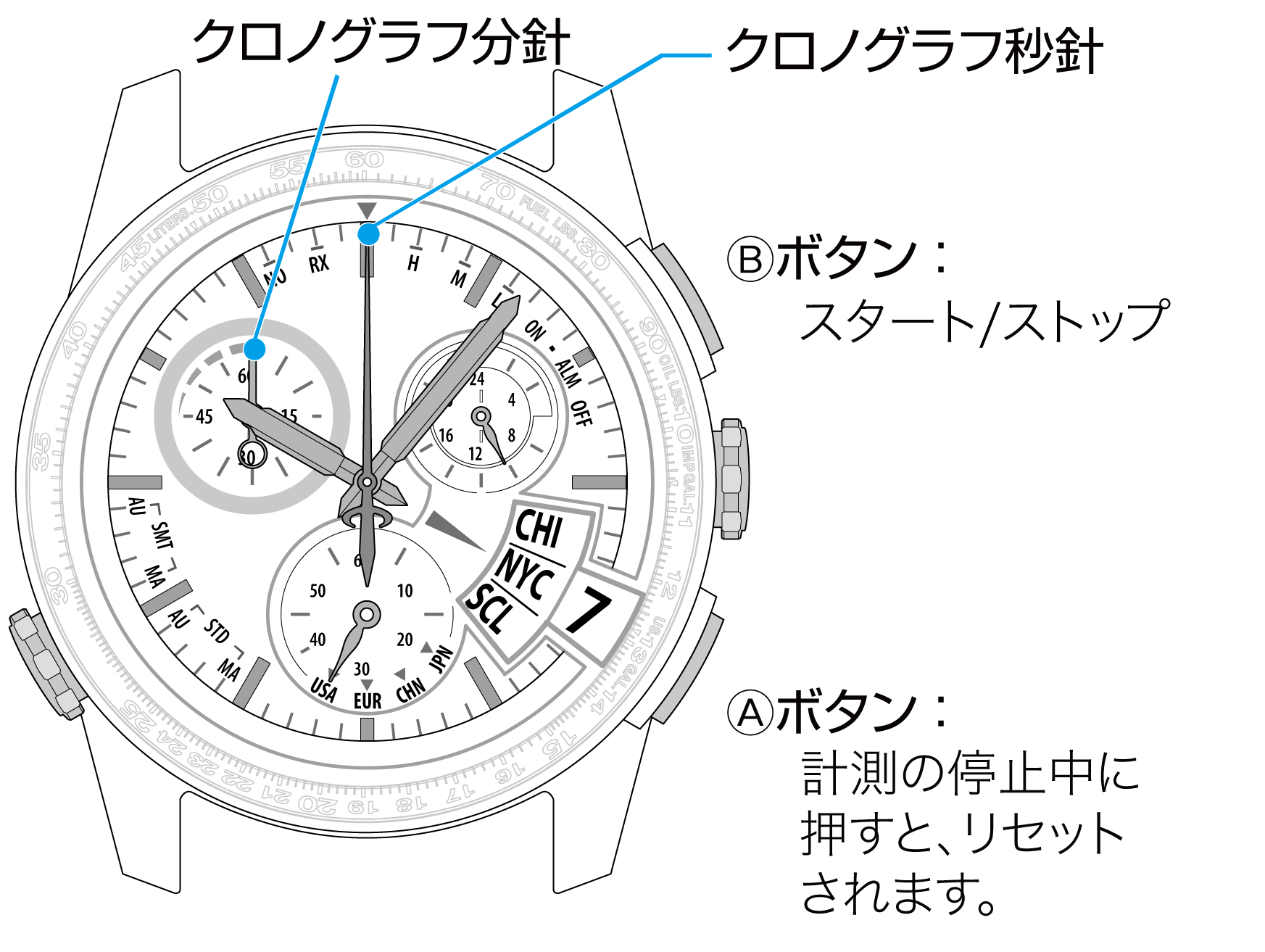計測が終わったら、必ずクロノグラフをリセットしてください。