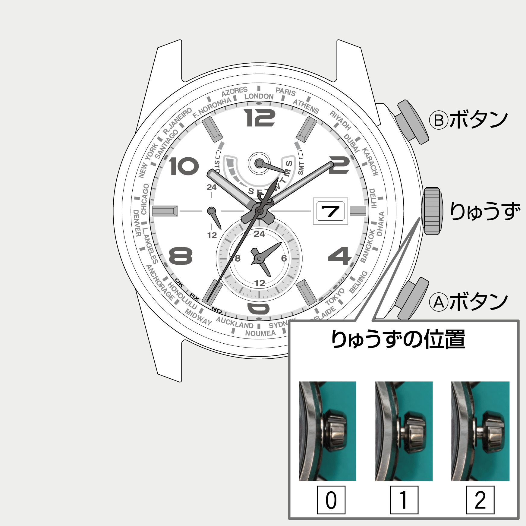 | りゅうずの位置が0でない | りゅうずの位置を0にする |