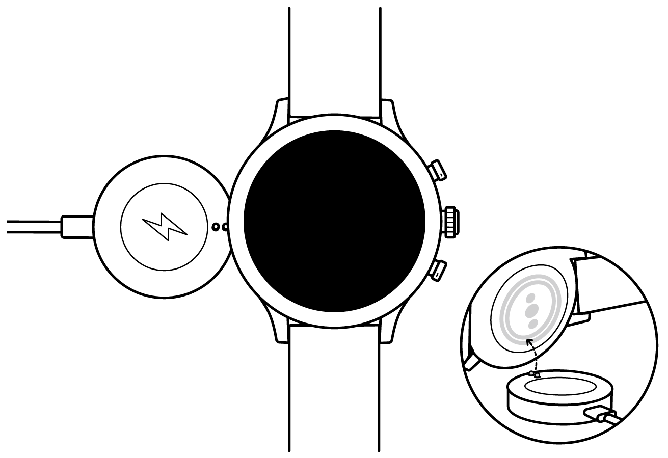 - 警告:時計への損傷を避けるため、付属の充電ケーブル以外を使用しないでください。