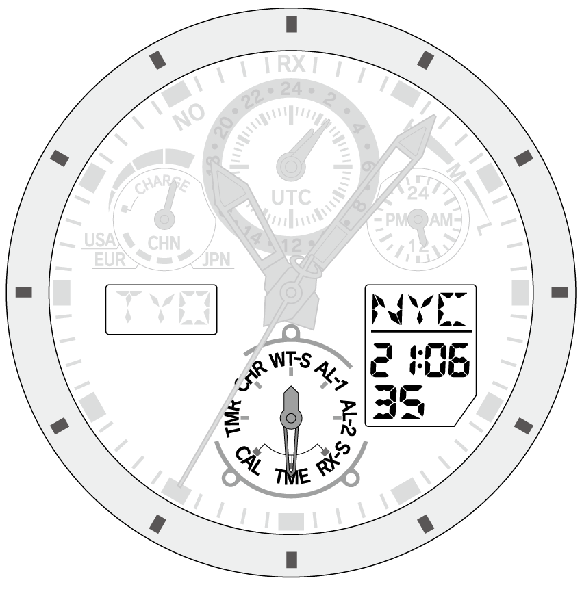 - 時計のモードが、[TMR]や[CHR]のとき