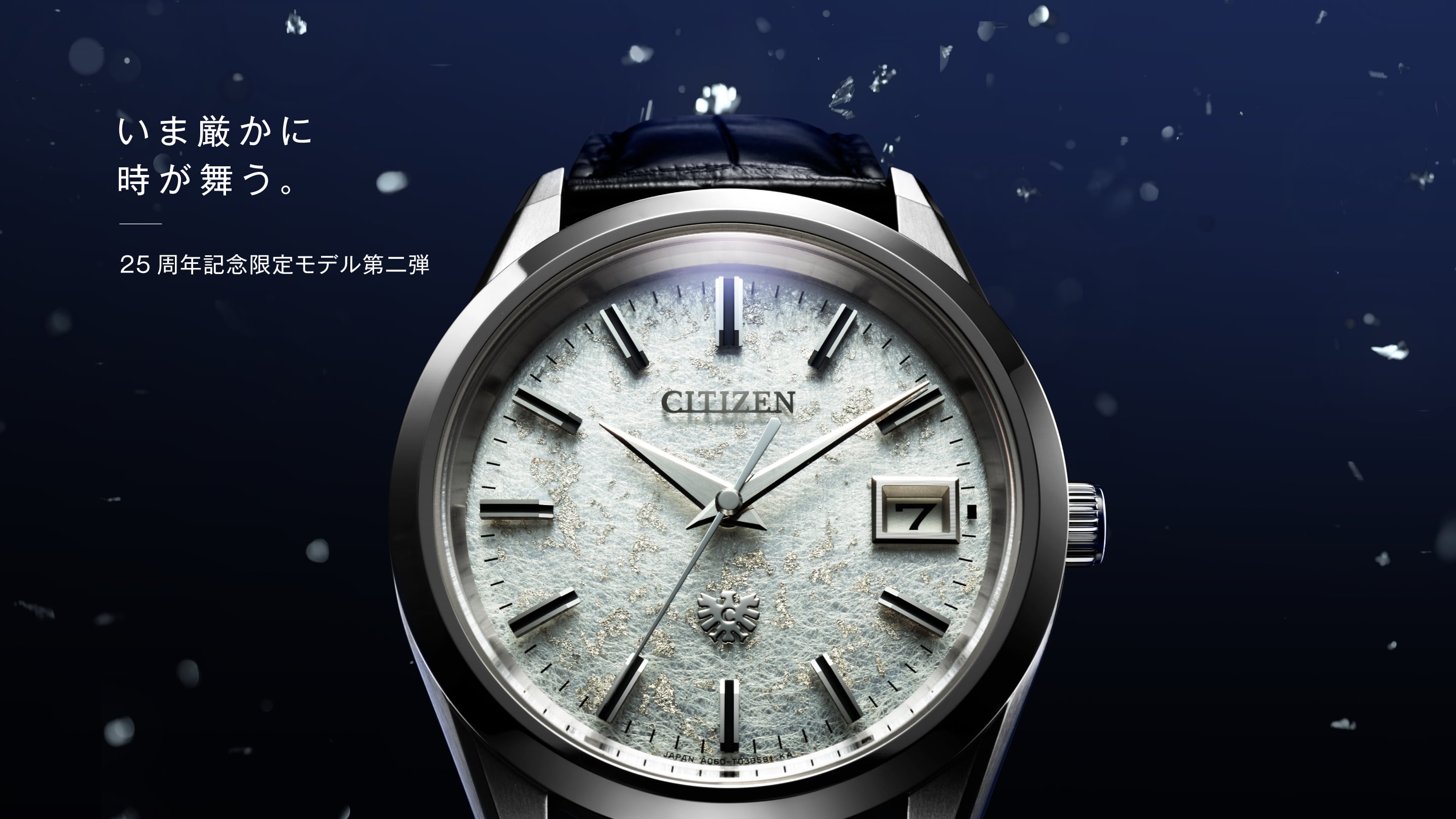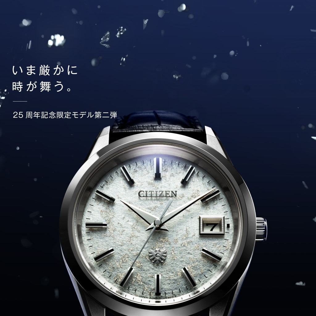 日本三大和紙のひとつである土佐和紙に、砂子蒔きの技法でプラチナ箔を散らした文字板。 先進技術と日本の伝統工芸が融合した、The CITIZENの新作です。