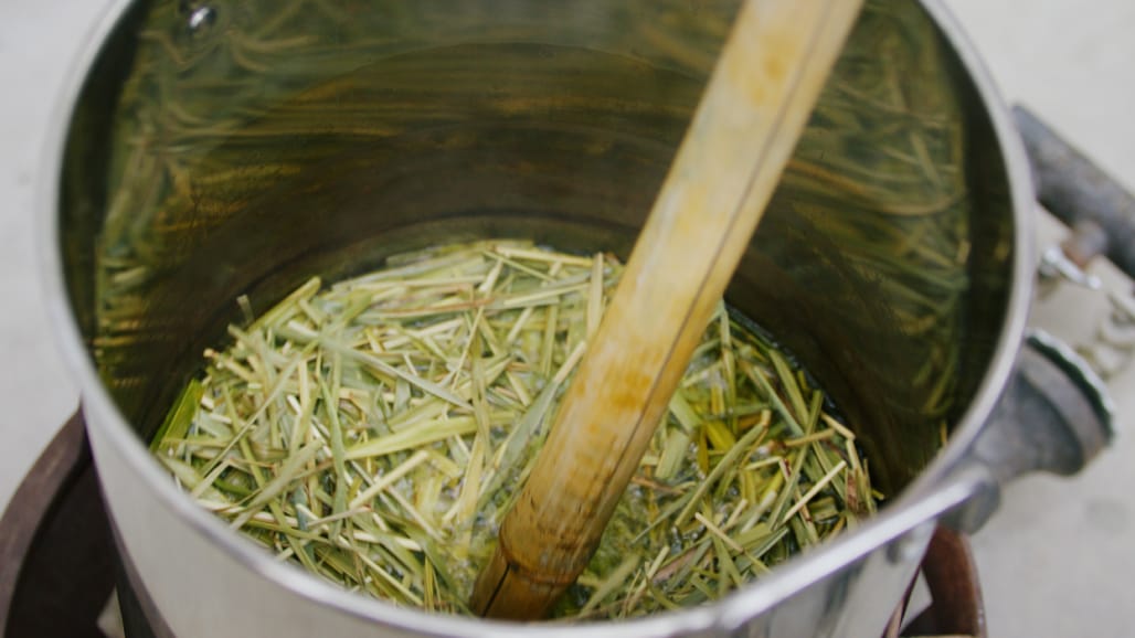 渡邊:発色の良い緑色をつくるために、まずはベースとなる黄色を、どう出すかを探る必要がありました。身近に手に入る材料として、マリーゴールドとレモンを使い、媒染剤も5種類ほど試しながら、どの組み合わせが最適なのかを探っていきました。