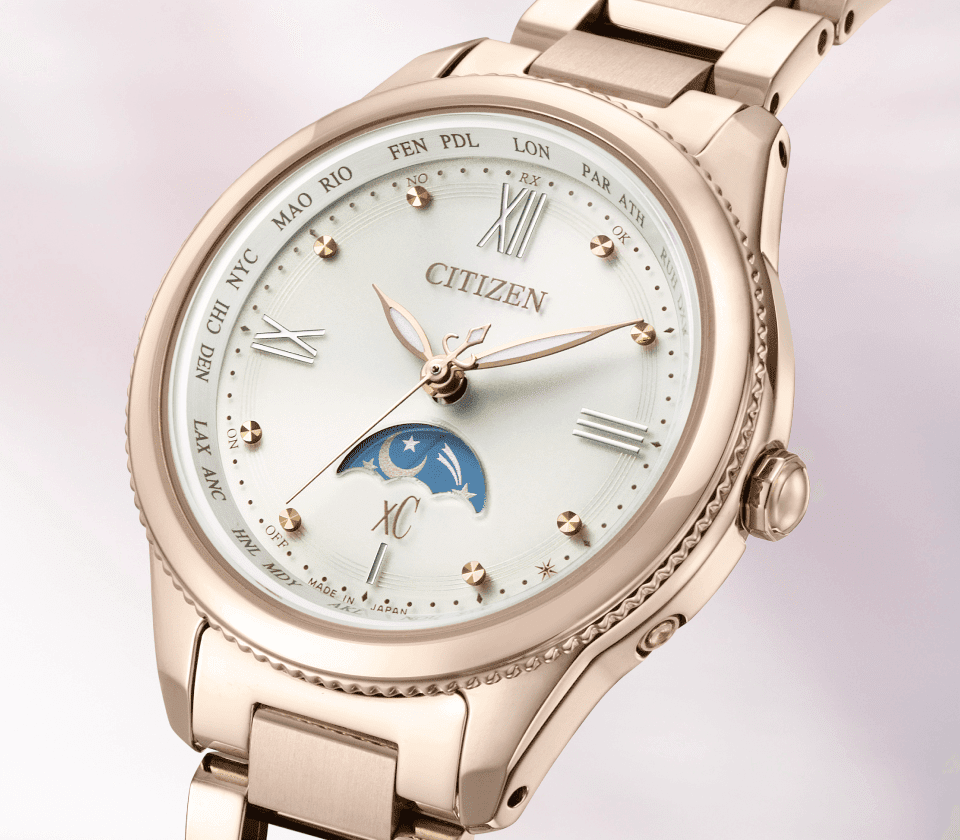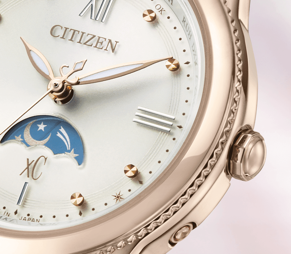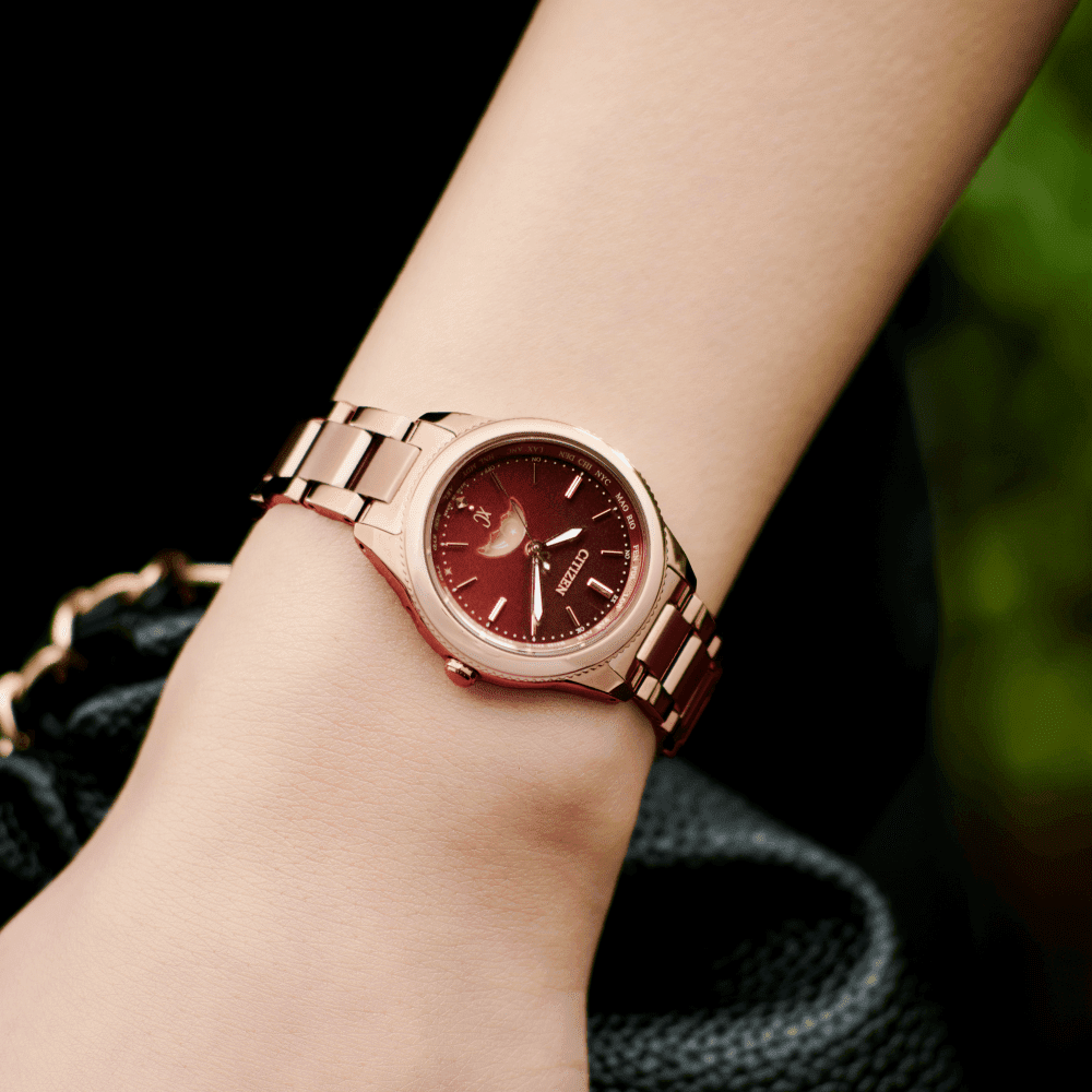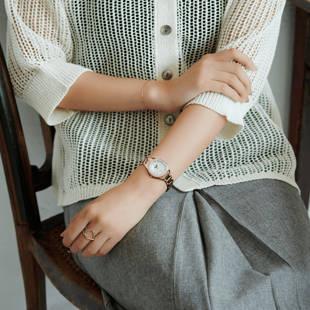 広い大地を、時間が前に進むことを楽しみながら歩き続けてほしい。そんな想いから、おおらかで凛としたケースデザインとサン&ムーン機能を採用。太陽と月が進むべき道を明るく照らし、未来へと導きます。