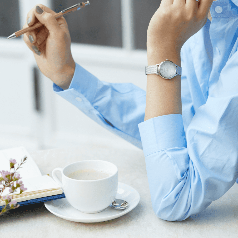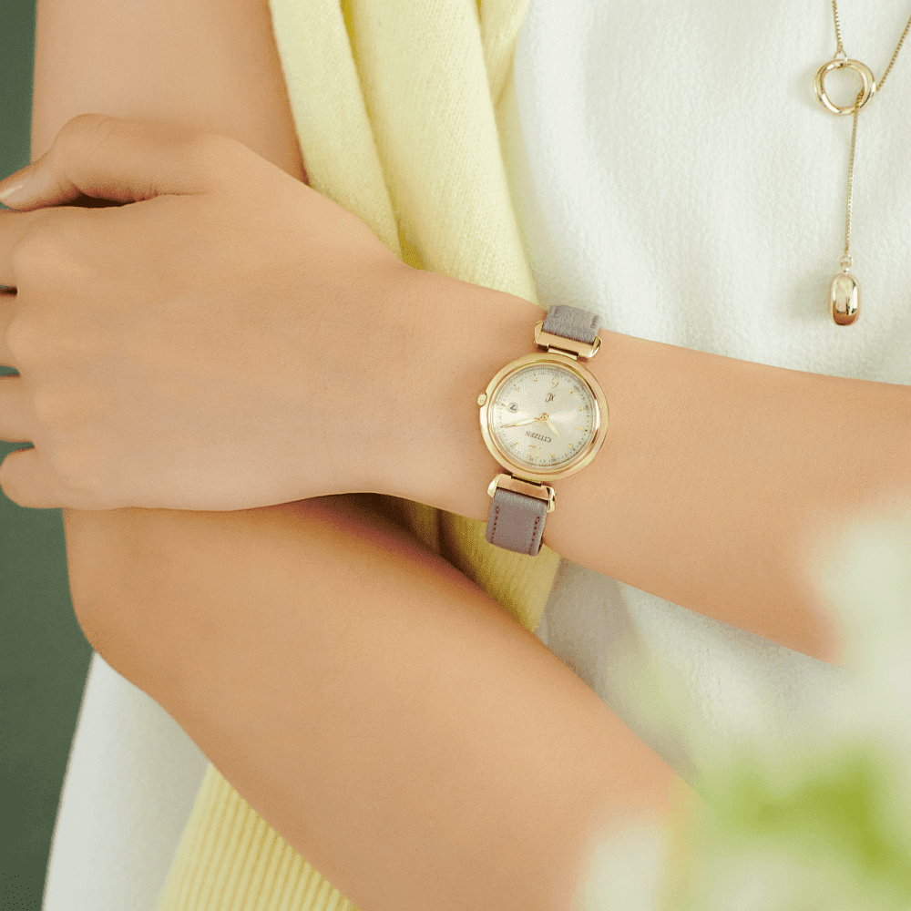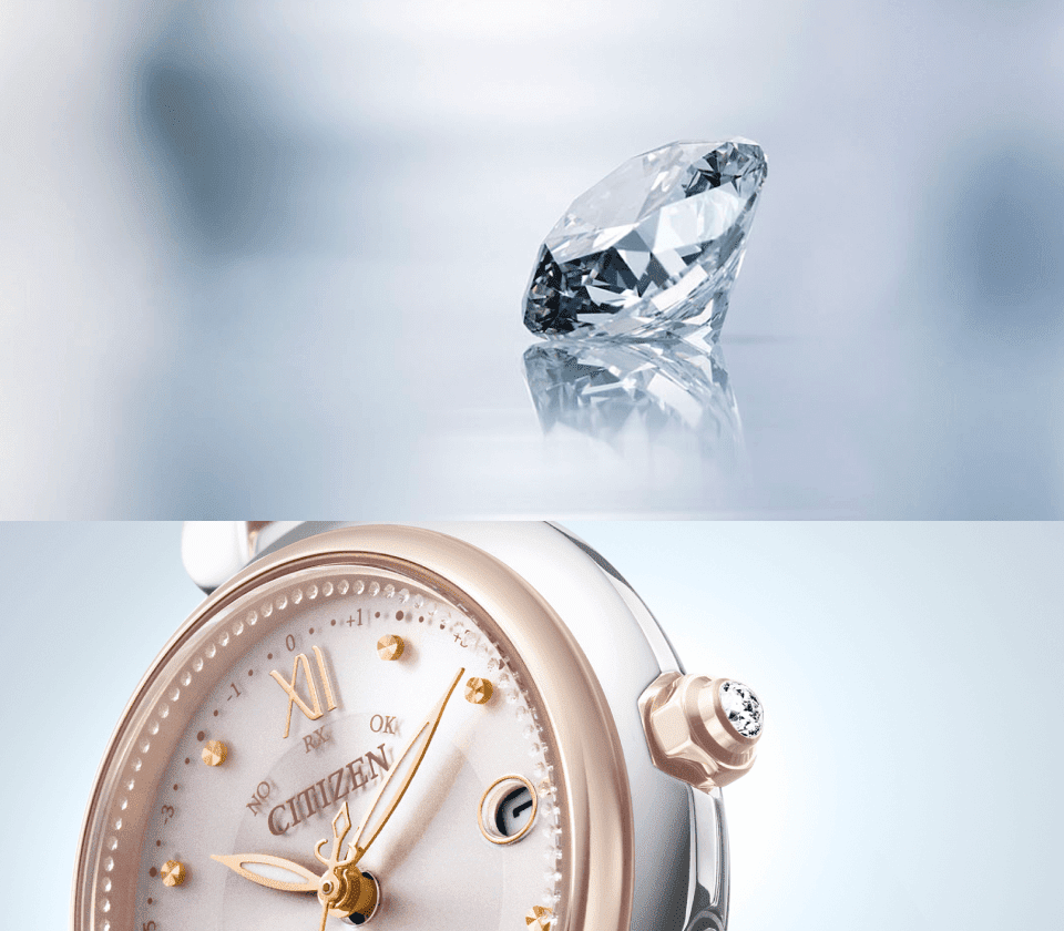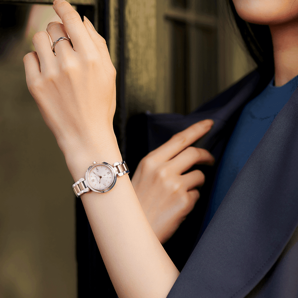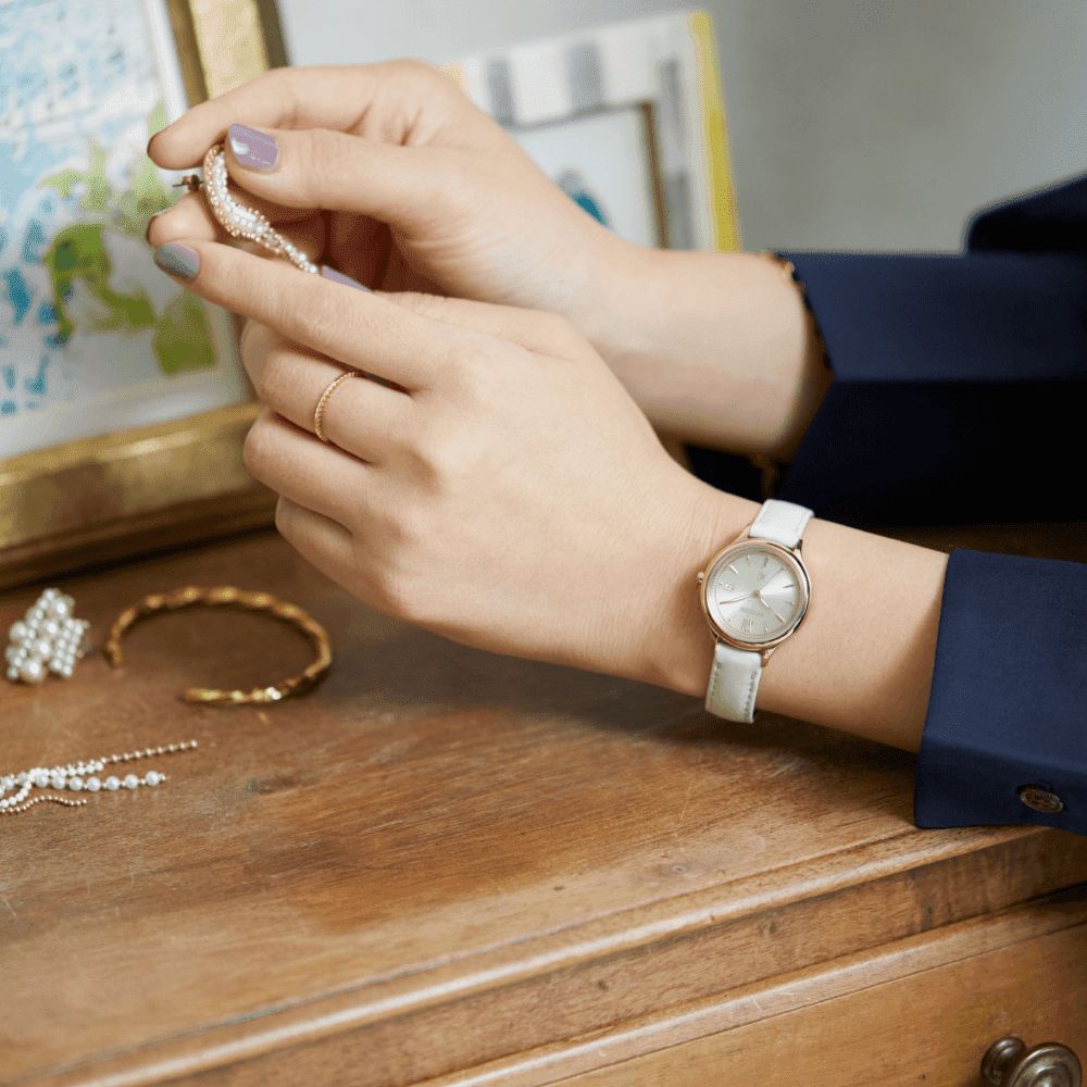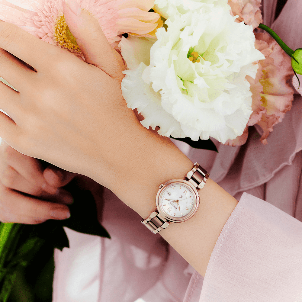 やさしく流れる水のようなケースラインと、雫のようにみずみずしく輝く小粒のミルグレインリング